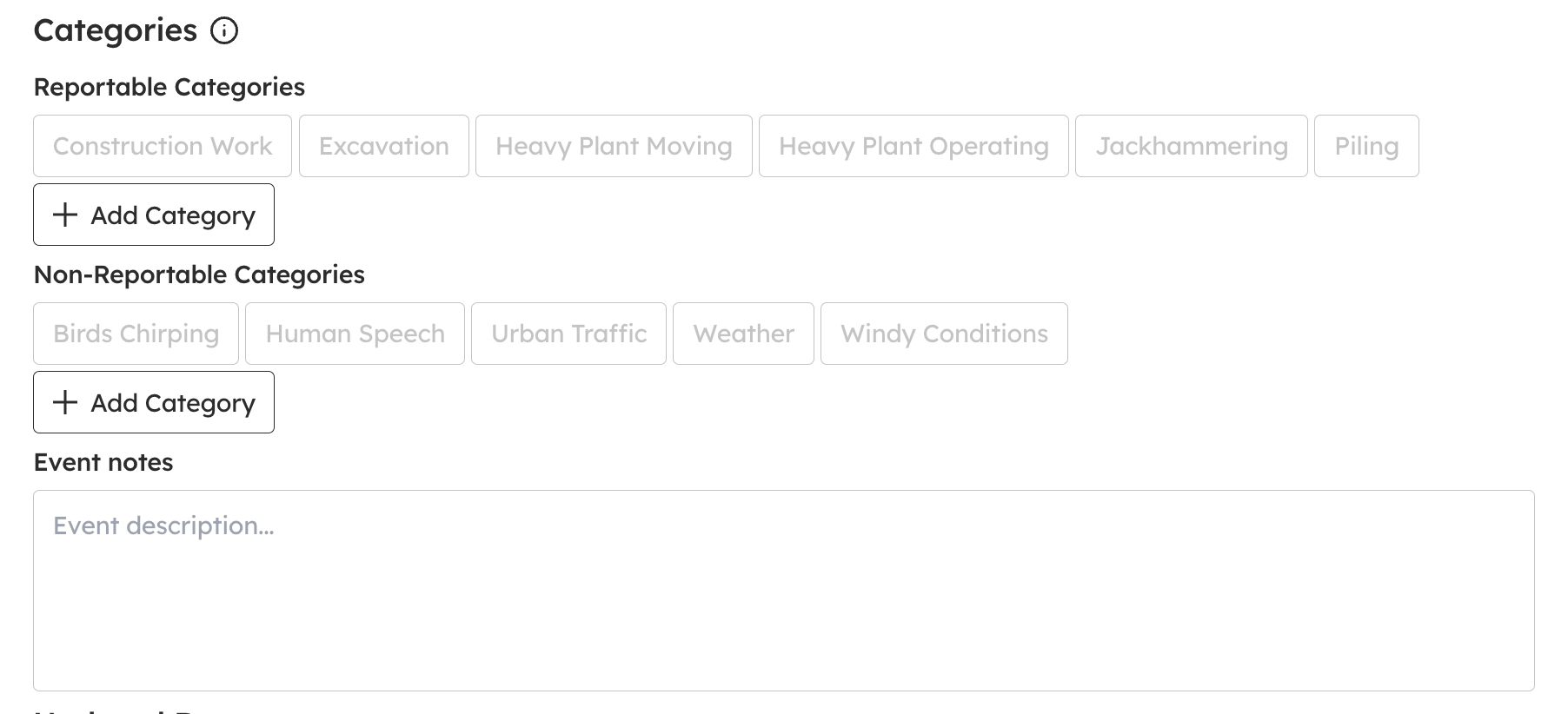 Events can be included, Reportable, Non-Reportable, or both, in SiteHive generated PDF reports and CSV reports.